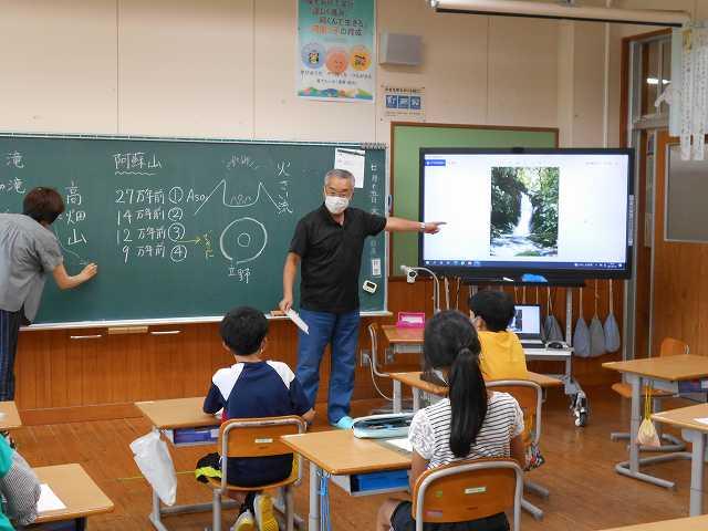 総合的な学習の時間、「大好きかわはら!」の活動も軌道に乗り、各チームでの活動が活発になってきました。本日は急な雷雨で予定していた見学調査ができなくなったチームもありましたが、室内での活動に変更しました。名所チームはGT(ゲストティーチャー)に来ていただき、白糸の滝について調べていました。