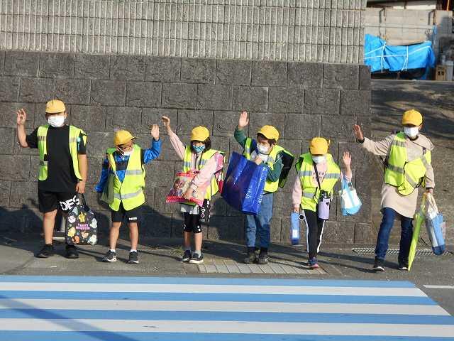新しい登校班で元気に登校です。交通ルールを守り、きちんと自分の目で安全を確かめて渡ります。