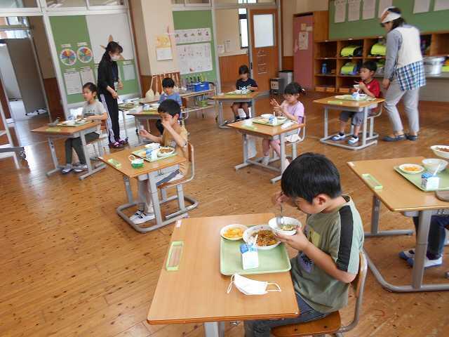 早速給食も始まりました。12時前から「おなかすいた・・・」と待ち遠しかったです。