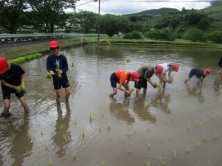 最後までみんなでがんばりました。少々の曲がりはありますが、きれいに並べて植えることができました。保護者の方のご協力にも感謝しております。これから5年生を中心にしっかり世話をして、秋には立派なお米を収穫できたらいいなと思います。