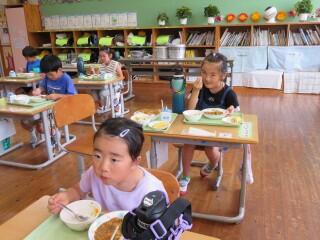1年生の子ども達は何でもよく食べて、嫌いな食べ物も最後までがんばって食べるがんばりやさんが多いのですが、入学したての頃と比べると、食べる量も速さもずいぶん成長を感じます。心も体もたくましくなってきました。