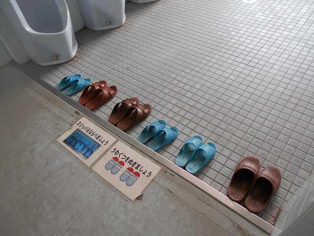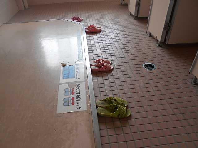 児童昇降口の子どもこどもたちの靴箱は、ほぼ全員のかかとが揃っています。トイレはどうかな・・・?と見てみると、これもきちんと並んでいます。子どもたちが並べてくれている姿はシャッターチャンスがなくて、なかなか撮れないのですが、スリッパの具合はこんな感じです。いつも誰かが、(全員かも・・・)並べてくれていることをとても嬉しく思います。