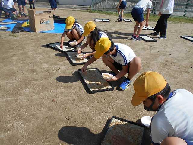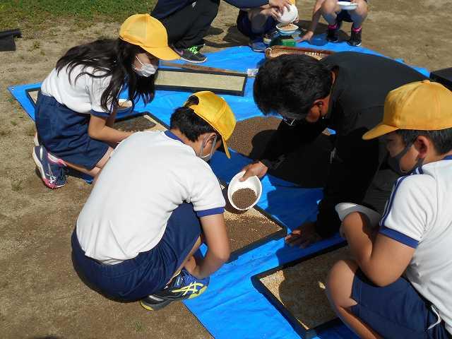 5年生を中心として毎年稲作りを行っています。今年も6月に田植えを予定しています。今年は農業ボランティアの堀田さんから指導してもらいながら、5年生の子どもたちが苗から育てます。