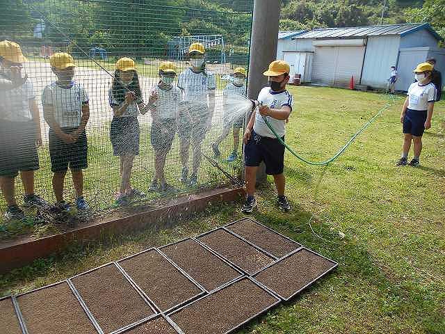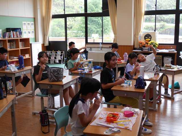 本年度から歯磨きタイムの時間を変更しました。昼休みの後、掃除の前の時間に全校一斉に校内放送の合図で、各学級で映像をみながら歯磨きを行います。全校児童が同じ時間に揃って歯磨きすることで磨き残しや、磨き忘れがなくなり、感染防止の対策にもなります。