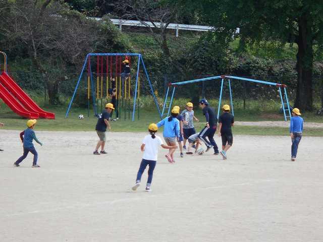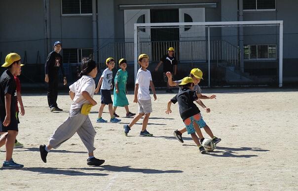 昼休み、運動場が賑やかだったので窓の外を見てみると、1年生から6年生まで入り交じって、サッカーをして遊んでいました。上学年は下学年に配慮しながら、でも自分たちも楽しんで、み~んなで走り回っていました。よく見るとその中に先生たちも混ざって走り回っていました。なんとも言えないほっこりした一時でした。これも河原ならでの光景かな・・・と思います。
