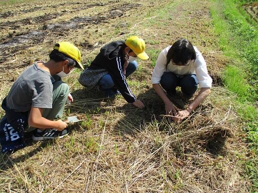 田んぼと生物がどのように関わっているかを一年を通して調べています。