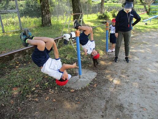 1年生は,体育で鉄棒遊びに取り組んでいました。