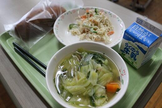 今日の給食は,揚げパン・春キャベツのポトフ・切り干し大根のごまネーズ・牛乳でした。