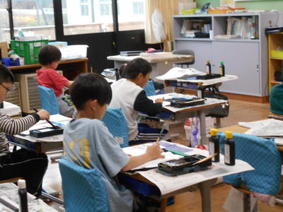 1年生は、この1年間、生活科や図工の時間を中心に、さまざまな色に着目しながら学習を行っています。12月8日(月)は、「河原の土からできたおいもの色を残そう!」というめあてで、からいもからとれた色で染め物をしたり、河原の土と別府の土で絵を描いたり比べたりしながら活動を行っていました。この日は、色研究会の方々も来られ、「ふるさとを愛する心を育むことにつながりますね」というお声も聞くことができました。また、地域の方や保護者の方にもお手伝いいただきました。ありがとうございました。