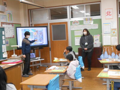 先日、河原小学校が台湾の祥和國民小學と友好提携を結んだことを受け、4年生が、12月16日(火)に地域の方をお招きして、台湾や志賀哲太郎氏についての学習をしました。クイズ形式で台湾のことを教えてもらったり、日本と台湾の歴史について触れたりしました。また、熊本の偉人である志賀哲太郎氏の功績についてわかりやすく教えていただくことができました。子どもたちは楽しく学びながら、理解を深めていました。今後は、学んだことを祥和國民小學をオンラインで交流していく予定です。