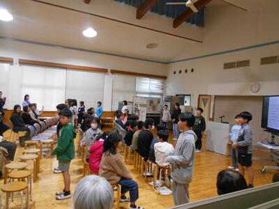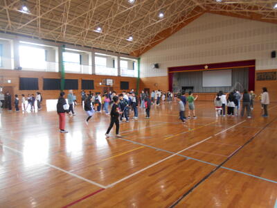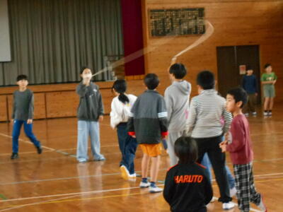 3月5日(木)の午後、JA跡地(かわはら広場)でミニゲーム大会が開催されました。これは、3年生から6年生までの異学年での総合的な学習の時間に、どうしたら地域との方々との交流を深めることができるかという課題で探究していった「交流グループ」が企画したものです。西原村で活躍しておられる地域おこし協力隊の方々に、GTとして複数回来ていただき、交流のノウハウを学んできました。当日は、これまでの学びを生かして、輪投げやモルック、ストラックアウトなどのミニゲームに加え、時間を設定してのじゃんけん大会やビンゴ大会などを、子どもたちが主体的に進めていました。また、「魅力グループ」が作り上げた「河原よかとこ音頭」も飛び入りで披露されました。集まってくださった地域の方々や保護者の方々は、総勢32名。中には、以前、河原小で勤務されておられた先生まで来てくださり、大盛り上がりでした!子どもたちの地域の方々を笑顔にしたいと思う気持ちと地域の方々が子どもたちを応援してくださる気持ちが重なった、とても温かい時間となりました。ご協力いただいた方々、本当にありがとうございました!!