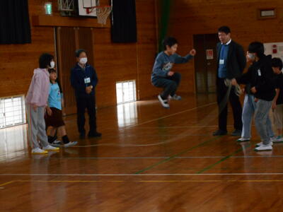 2月25日(水)の昼休みに、保健体育委員会による「たてわり班対抗長縄大会」が実施されました。1月から毎朝練習をしてきた8の字跳び。始めた頃はなかなか縄が跳べず、通り越すだけの子どももいました。また、子どもたちより先生たちの声のほうが多く聞こえてきていました。しかし、毎朝続ける中で、高学年が下学年に跳ぶタイミングを教えたり、並ぶ順番を工夫したり、子どもどうしでよく励まし合えるようになってきました。そして、いよいよ決戦の時が訪れました。どの班も、お互い声をかけあって一生懸命チャレンジする姿があり、運動会のときに送った「一生懸命はかっこいい!」がよみがえり、たいへん感動的な大会となりました。委員長から、優勝した班はもちろんのこと、全部の班に対しても表彰が行われ、子どもたちすべてに達成感が生まれていました。たとえ大きな行事でなくても、こうして子どもたちが企画し、実践し、振り返る。まさに特別活動の力です。本当に素晴らしい!!