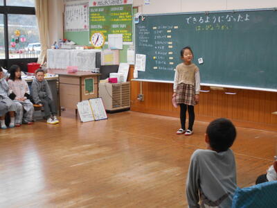 2月19日(木)の午後、新入児及び新入児保護者を対象とした「体験入学」が行われました。新1年生の子どもたちは、1年生教室に招かれ、クイズやいす取りゲームなどをして楽しみました。1年生は、前々から新しい1年生のために準備を進めており、本番はちょっぴり緊張しながらも、しっかりお兄さん・お姉さんぶりを発揮し、交流会を盛り上げていました。新1年生の子どもたちが笑顔で交流会に参加していたのが、印象的でした。保護者の方々には、「親の学びプログラム」に参加してもらいました。進行役として、郡市でご活躍中の鞭馬さん(親の学びトレーナー)に来ていただき、子どもの入学に向けて不安なことや心配なこと、わが子に期待することなどをお互い小グループで話し合う時間を設けていただきました。園が違ったり、河原小学校が初めてだったりという方もおられたので、保護者どうしが知り合ういいきっかけづくりになったと思います。4月の入学式を楽しみにしております!