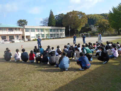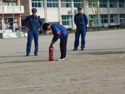 11月10日(月)、火災避難訓練が実施されました。この日は、理科室から出火したという想定で行いました、子どもたちは、放送をしっかりと聞き、「お・は・し・も」を意識しながら避難をしました。避難の様子を見て、消防署の方から良かった点だけでなく課題点も教えていただきました。その後、代表児童を中心に、消火器の使い方も教えていただきました。火災がないのが一番ですが、いざというときのために訓練をしておくことは、とても大切なことですね。