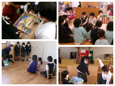 2年生は、12月1日(月)城北アソカ保育園、8日(月)栗の実保育園、16日(火)つぼみ保育園を訪れ、にこにこ交流会を行いました。自作の魚釣りゲーム、迷路、ボウリングでの遊び、読み聞かせなどを年長・年中・年少の子ども達と一緒に楽しみました。園児の「楽しかった」という感想を聞き、2年生の子ども達もとても喜んでいました。お兄さん、お姉さんとして、園児が楽しんでくれるためにはどうしたらよいかを考えながら交流会の準備をし、当日も積極的に関わっていました。この取組を通して「相手のことを考えて行動すること」を学ぶ貴重な機会となりました。