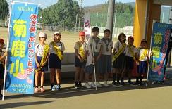 抜けるような青空、絶好の運動会日和に恵まれ、多くのご来賓の皆様、保護者の皆様、地域の皆様をお迎えして、令和元年度の運動会を開催しました。運動会児童会目標「赤白本気でとことん取り組む運動会にしよう」を胸に、感動的な最高の運動会をみんなの手で作り上げることができました。菊鹿っ子、本当に本当によく頑張りました!サプライズゲストとして、ボクシングWBOアジアパシフィックフェザー級タイトル王者の森武蔵選手が、4月の熊本の凱旋試合でチャンピオンベルトを守り抜かれた報告と菊鹿っ子の応援のために、駆けつけて下さいました。森選手、ありがとうございました。 運動会の熱戦の結果は、僅差で赤組の優勝となりました。赤組も白組も、「赤白本気でとことん取り組んだ素晴らしい運動会」でした。皆様、熱い熱い応援をありがとうございました。