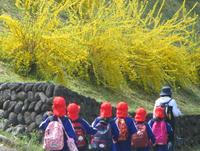 あんずの丘にはあんずの花が6,7分咲きでしょうか。黄色いレンギョウの花も咲き始めました。小学校の校庭の桜は・・と見て回ったら、ちらほらと咲き始めていました。ちょうど退任式の頃が見頃になりそうですね。