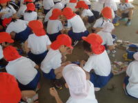 ちぎった梅はよく洗ってへたを取り、梅ジュースづくりに挑戦です。すぐ飲めると思っていた子もいて、時間がかかると聞きちょっとがっかりしていました。その後は「おいしくな~れ」「おいしくな~れ」の大合唱。どんなふうに梅ジュースができあがっていくのか、毎日、瓶を覗き込んで観察することでしょう。楽しみですね。