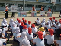 歓迎遠足に向かう前に、交通教室を実施しました。どうしたら、自分の身を守れるか、安全な行動につながるか、当事者意識を持って真剣に練習をしました。