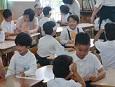 給食委員会の主催で、6月から昼休みを使って学年毎に「豆つかみ大会」を行ってきました。制限時間内に、箸で大豆を別の皿に移すものです。「豆つかみ大会」の最後は、1年生。6年生のお手本をよ~く見て、いざ挑戦!正しく箸を持てないと、豆を上手につかめません。苦戦している子もいました。6年生の見守りや励ましを受けながら、箸を正しく持つための楽しい練習になったようです。