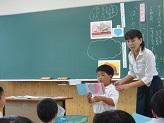 6月4日に1年生で道徳の研究授業を行いました。「はしのうえのおおかみ」という資料を使って、「親切」について考えました。ペアでの会話や役割演技をとおして、親切にした方もされた方もどちらもいい気持ちになることに気づいた1年生。日常の出来事を振り返って、友達がしてくれた親切で心がほっこりしたことを語ってくれた子もいました。