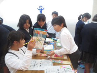 校区にお住まいの方に、1時間目の1年生から6時間目の6年生までぶっ続けでしおり作りを指導していただきました。準備は家庭教育部の方々にもご協力いただき、今日も数名のかたに来ていただきました。しおりに使う材料がとてもカラフルでデザインもいろいろあり、子どもたちは「お母さんにプレゼントします」「弟の誕生日プレゼントにします」などと言いながら、わくわく楽しく作っていました。大変お世話になりました。残りの写真は行事アルバムに掲載します。