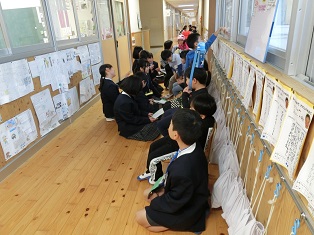 小中連携授業研究会と山鹿市ふれあい人権講座を兼ねて、5年生が人権学習(水俣学習)を公開しました。約60名の参加者があり、教室に入れない方は隣の教室で、カメラで撮影したものを大型テレビで流して見ていただきました。子どもたちの一生懸命に考える姿や発表する人に体を向けて聞く姿に感心しておられました。水俣病の患者さんたち、それを支えた人たちの思いをしっかりと考えることができました。菊鹿小上級生としての立派な姿を多くの方々に見せることができました。