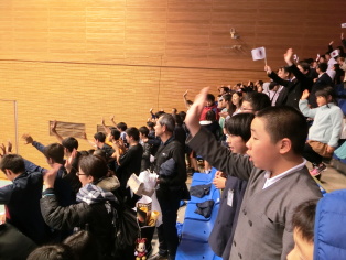 児童19名、保護者8名の方々と女子ハンドアジア選手権の応援に山鹿市総合体育館に行きました。菊鹿小は日本代表の応援の中心になるよう依頼されており、鹿本高校のハンド部の生徒が菊鹿小の子どもたちが考えた応援の言葉を入れて応援の音頭をとってくれました。菊鹿小の子どもたちは大きな声を出して、応援の中心となっていました。おかげで、日本チームはカザフスタンに快勝し予選リーグをトップで通過しました。送迎、応援とご協力いただきました保護者の方々にお礼申し上げます。残りの写真は行事アルバムに掲載します。