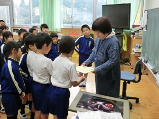 午後から学習発表会を開催しました。オープニングの音楽部の演奏のあと、学年毎に本年度の学習の成果を発表しました。どの学年も大きな声で元気よく、劇や歌、スライド、クイズ、実演など様々な方法で発表し、学習の成果とともに子どもたちの成長を感じました。これも、保護者、地域の方々のおかげだと深く感謝申し上げます。発表会後は、学級懇談会を行い、こちらも多数のご出席をいただきありがとうございました。残りの写真は行事アルバムに掲載します。
