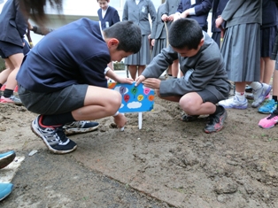 6年生がタイムカプセルを北側駐車場の端に埋めました。8年後の成人式に開けるそうです。たくさんの思い出が入ったタイムカプセルです。きっとたのしい成人式になることだと思います。担任の先生たちも楽しみにされていることと思います。残りの写真は行事アルバムに掲載します。