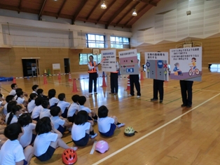 交通指導隊、駐在所、市民センターの方にご指導、ご協力いただき、2、3時間目に自転車教室を開催しました。運転に自信のない子どもたちは、特別に指導をしていただきました。自転車教室実施後は3年生も地区内で自転車に乗ることができますが、まずは運転の技能を磨いて、道路に出てほしいと思います。また、近年自転車が加害者となり巨額の賠償をしなければなれない事例もでています。自転車の保険も必ず加入をお願いします。残りの写真は行事アルバムに掲載しています。