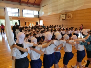 運動会で全校児童で踊る菊鹿音頭の指導に、あんずっ子クラブの木村先生に来ていただきました。最初に菊鹿音頭の歌詞には菊鹿の素晴らしいところが全部はいっているという話をしていただき、その後踊り方を教えていただきました。子どもたちからは「みんなで踊ると楽しい!」との声も聞かれました。本番では、保護者の方も地域の方もぜひ踊りの輪にお入りください。