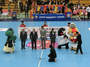 日本ハンドボールリーグ戦のオムロン対北國銀行の観戦に5,6年生の14名の子どもたちと行ってきました。開会のセレモニーや選手紹介、ハーフタイムのくまモンダンスなど、大きな大会ならではの演出と一流のプレーに会場は大盛り上がりでした。残念ながら、試合は前半つけられた3点差をなかかな詰めることができず、最後は23対24の1点差でオムロンが負けてしまいました。2019年には女子ハンドボール世界選手権が開催され、山鹿市総合体育館も会場になります。みんなで大会を盛り上げたいものです。残りの写真は行事アルバムに掲載します。