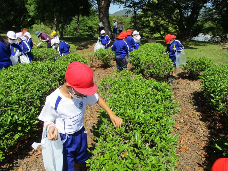 連休明けの5月6日(木)、田代元校長先生から手ほどきを受け、3年生が茶摘みに挑戦しました。家で手伝いをしたことがある児童もいましたが、大半の児童は初めての茶摘みだったようです。晴天の中、初めての茶摘みを楽しんでいました。摘んだ茶葉は後日、各家庭に持ち帰ります。楽しみにお待ちください。