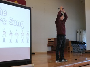 デニス先生の指導で、全校児童で英語活動を楽しみました。全員でカウントダウンをして始まり、みんなノリノリで英語を使ったゲームをしました。その後はデニス先生のふるさとである、フィリピンの紹介、最後にテレビ出演の経験もある素晴らしい歌声を聞かせていただきました。子どもたちの笑顔がいつも以上に見られ、低、中学年の子どもたちも英語の楽しさを感じたのではないでしょうか。来年度から3、4年生も英語活動が始まるので、よい機会となったことと思います。デニス先生の生の歌声には先生たちの方が喜んでいたようで、職員室では「ギャラばやらにゃんごたる」という声も聞こえてきました。デニス先生、楽しい時間をありがとうございました。残りの写真は行事アルバムに掲載しています。