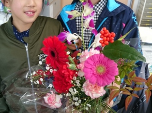 今日はあんずっ子クラブで生け花教室があり、一人一人、正月飾り用の花を生けたそうです。小学校にもどうぞということで子どもたちが持ってきてくれました。素晴らしいできばえです。きっと菊鹿小学校も素晴らしい年を迎えることができます。ありがとうございました。