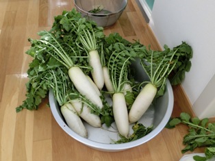 2年生が、学校で育てた大根を使っておでんパーティをしました。午前中に、大根、こんにゃく、ちくわを使っておでんをつくり、「先生におってみてください、おいしいにおいがします」と食べるのが待ち遠しいようでした。5時間目にお世話になった先生たちを招待し、お礼状を渡して、みんなで楽しくおでんを食べました。子どもたちが育てた大根の立派さにびっくりしました。