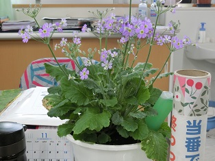 例年卒業式の時に体育館のステージやフロアーを彩る桜草の花が咲き始めました。昨年のプランターのこぼれ種から発芽した苗をポットに移植し、更にプランターや鉢に移植して育ててきました。今年は芹川先生が主になって子どもたちと育てられ、水やりや肥料やりを工夫して、昨年度より数百も多く立派な苗ができました。気温が高いせいかあまりにも早く咲き始め卒業式まで持つか心配ですが、その分、長い間子どもたちの目を楽しませてくれますね。