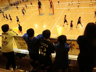 グリーンパルスで県小学生バレーボール大会が行われました(女子は別会場)。2階からは3人の子どもたちがメガホンを使ってリードし、保護者の方々がそれに合わせて大きな声で選手の名前を呼びながら応援をしておられました。1試合目、菊鹿クラブの子どもたちは次々とポイントを決め快勝しました。菊鹿小学校以外の子どもたちも何人もいますが、みんなとても仲良くチームワークの良さも強さの要因の一つだと思いました。