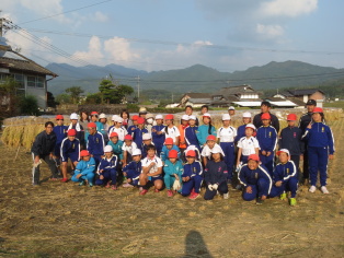 5年生が稲刈りを行いました。最初に刈り方やくくり方を教えていただき、その後実際に鎌で刈っていきました。刈った稲は2週間ほどかけ干しして脱穀する予定です。きっとおいしいお米ができたことと思います。たくさんの保護者の方や地域の方にご協力いただきありがとうございました。残りの写真は行事アルバムに掲載します。
