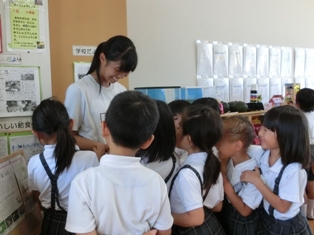今日から2学期が始まりました。子どもたちは、自由研究や工作、習字などたくさんの夏休みの成果を持って登校してきました。猛暑の夏休みでしたが、元気に登校してくれたことを大変うれしく思います。始業式では、2,4,6年の代表の子どもたちが夏休みの思い出と2学期頑張ることを発表してくれました。2学期もよろしくお願いします。