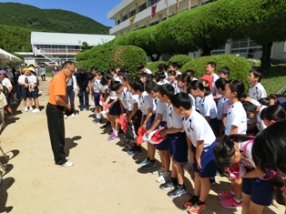 6年生が菊鹿中学校の体育祭に参加しました。最初に菊鹿中学校の校長先生に全員で挨拶し、技巧走に参加しました。カードに中学校の先生の名前が書いてあり、その先生をマイクで呼んで来てもらい、一緒に手をつないでゴールするものでした。中学校の先生の名前を少しは覚えられたでしょうか。菊鹿中学校の良さも感じられたことと思います。卒業生も頑張っていました。残りの写真は行事アルバムに掲載します。