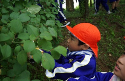 5月30日(木)2年生と一緒に梅ちぎりをしました。2年生から「ガチャガチャみたいに手を動かしてちぎるといいよ。」と教えてもらい、みんなで協力してちぎりました。次の日に梅ジュース作りをしました。できあがりが楽しみです。