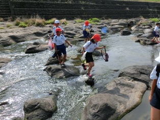 アウトドアクラブの子どもたちが自転車で内田川に出かけ川で魚をとったりして水に親しみました。20cmほどのカワムツを素手で捕まえた子どももおり、さすが菊鹿の子どもだと思いました。近くに豊かな自然があることは子どもたちにとっても幸せなことだと思います。