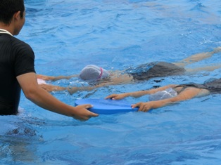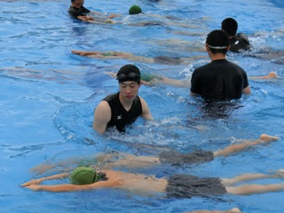 城北高校のスポーツ科学科の生徒11名が、4,5,6年生の水泳の授業の手伝いをしてくれました。手本を示したり、手を取って教えてもらったりして、子どもたちもいつもより楽しく一生懸命に取り組んでいました。お昼は給食を一緒に食べました。