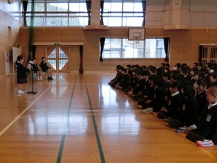 長い2学期もあっという間に終わり2学期の終業式でした。1,3,5年生の代表が2学期頑張ったことや3学期の目標を発表しました。終業式のあとは教室で通知表をもらいました。もらった後はお互いに見せ合ったり、真剣に読んだりしていました。保護者の皆様、地域の方々のご支援のおかげで子どもたちが大きく成長した2学期でした。ありがとうございました。