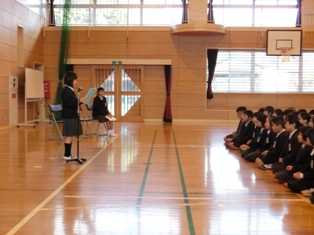 24日から学級閉鎖だった1年生が今日から登校です。朝からいつも通りの元気のいいあいさつの声が聞こえ、授業中もいつも以上に張り切って発表していました。学校全体のインフルエンザも各学年1~2名でずいぶん減ってきました。しかし、もうしばらくは寒い日が続きますし、インフルエンザもまだまだ各地で猛威を振るっています。ご家庭でも、うがい手洗い、十分な休養、外出時はマスクの着用などよろしくお願いします。