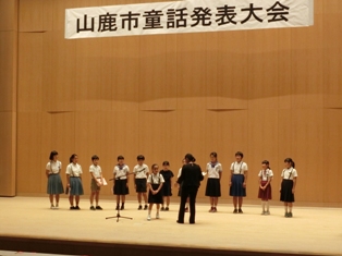 山鹿市内12校の小学校の代表18名が参加し、山鹿市民交流センターにおいて山鹿市童話発表大会が開催されました。本校からは5年生が代表として「どんぶつさいばん ライオンのしごと」を見事に発表しました。立派な会場、大勢の人たちの前での発表は、緊張もあったことと思いますが、貴重な経験になったことと思います。