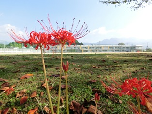 日中は暑い日が続いていますが、学校の彼岸花も見頃を迎え秋の気配を感じます。番所の棚田の彼岸花も見頃と新聞にでていたので、今週土曜日のきくかまつりの時には多くの方が来られるかもしれませんね。実りの秋、子どもたちは勉強に運動に頑張っています。