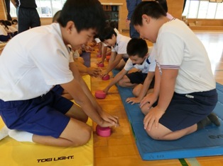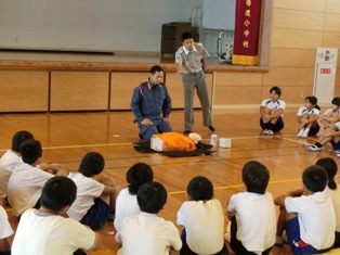 山鹿消防署東分署の方に来ていただき、6年生が心肺蘇生法の講習を受けました。心臓マッサージの練習では思ったより強く押さなければならないこと、同じリズムで長く続けるのは一人では大変なことなどに気づいたようです。このような体験を積み重ねることで、いざというときの対応ができるようになることと思います。残りの写真は行事アルバムに掲載します。